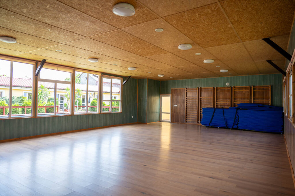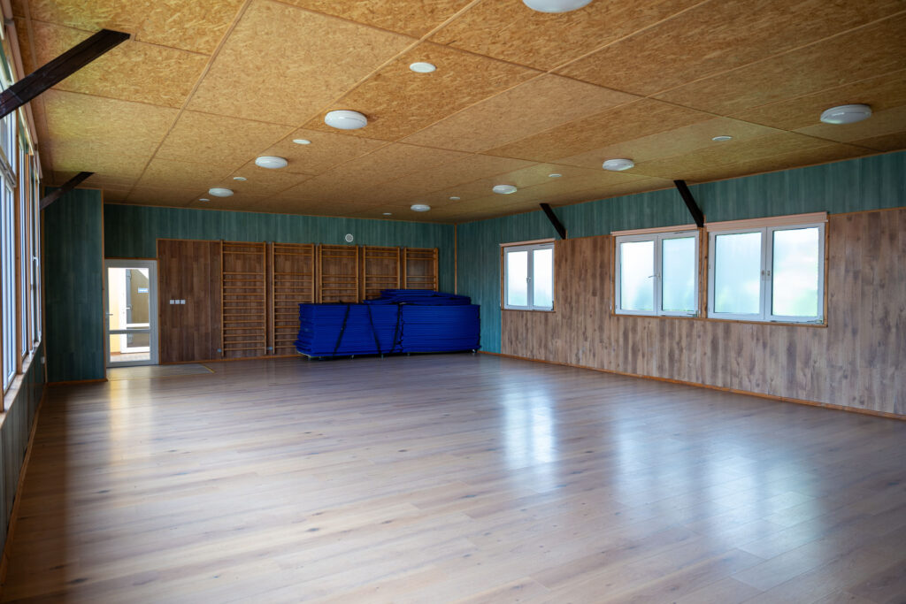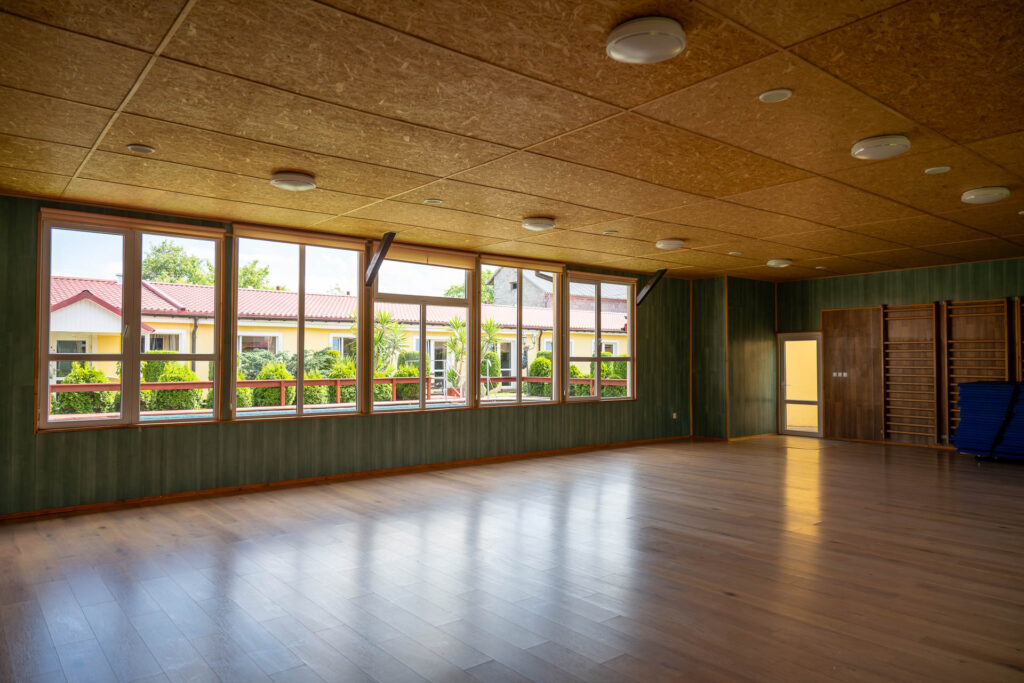 • Świetlica (90 m 2 ) wyposażona w sprzęt dyskotekowy, drabinki sportowe, ławeczki, ping-pong,