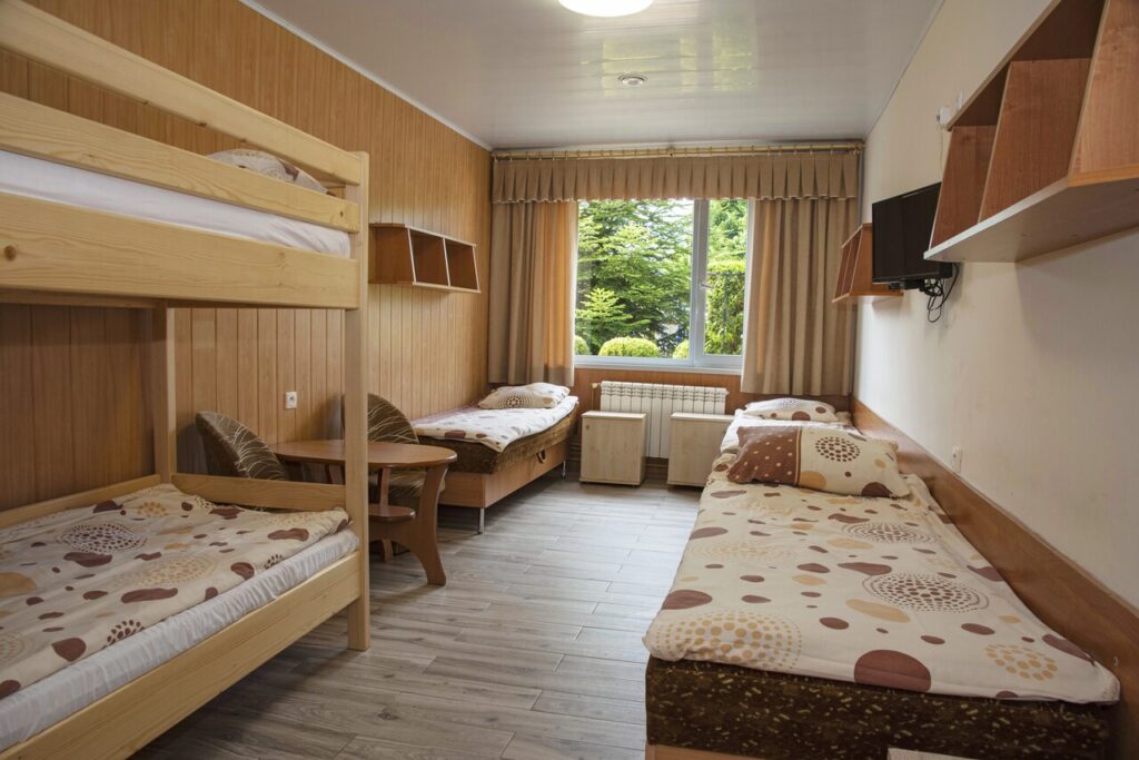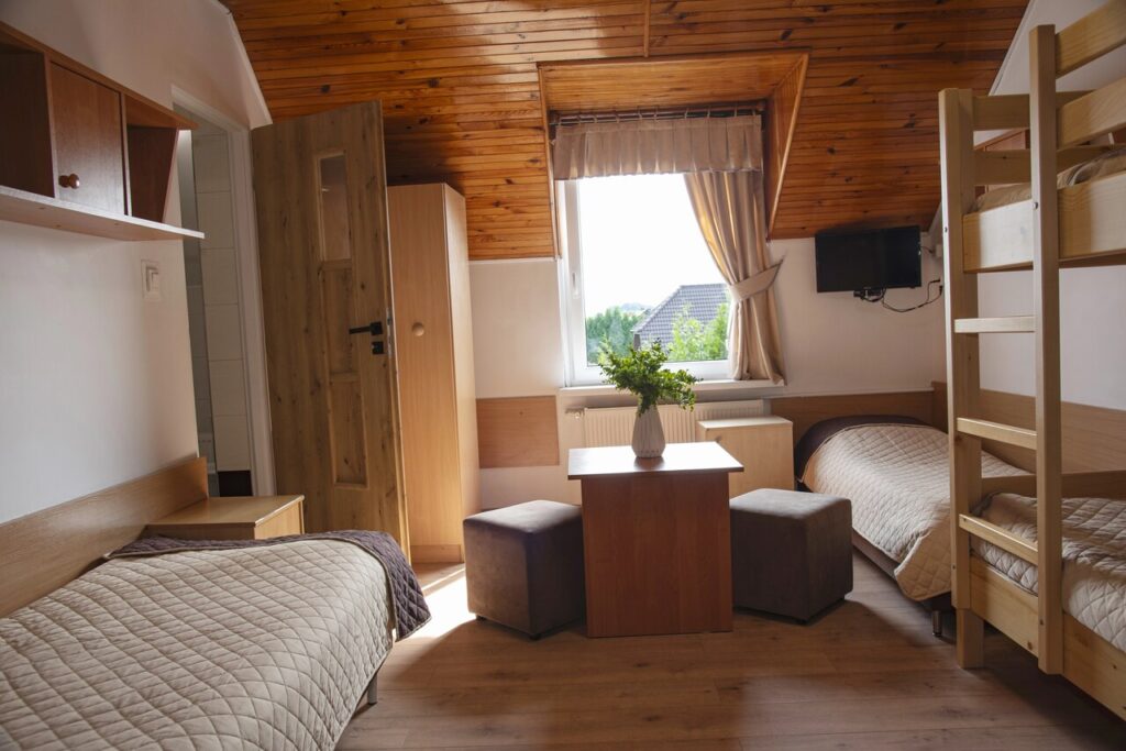 • Noclegi w pokojach 4-5-6 -osobowych z pełnym węzłem sanitarnym + TV